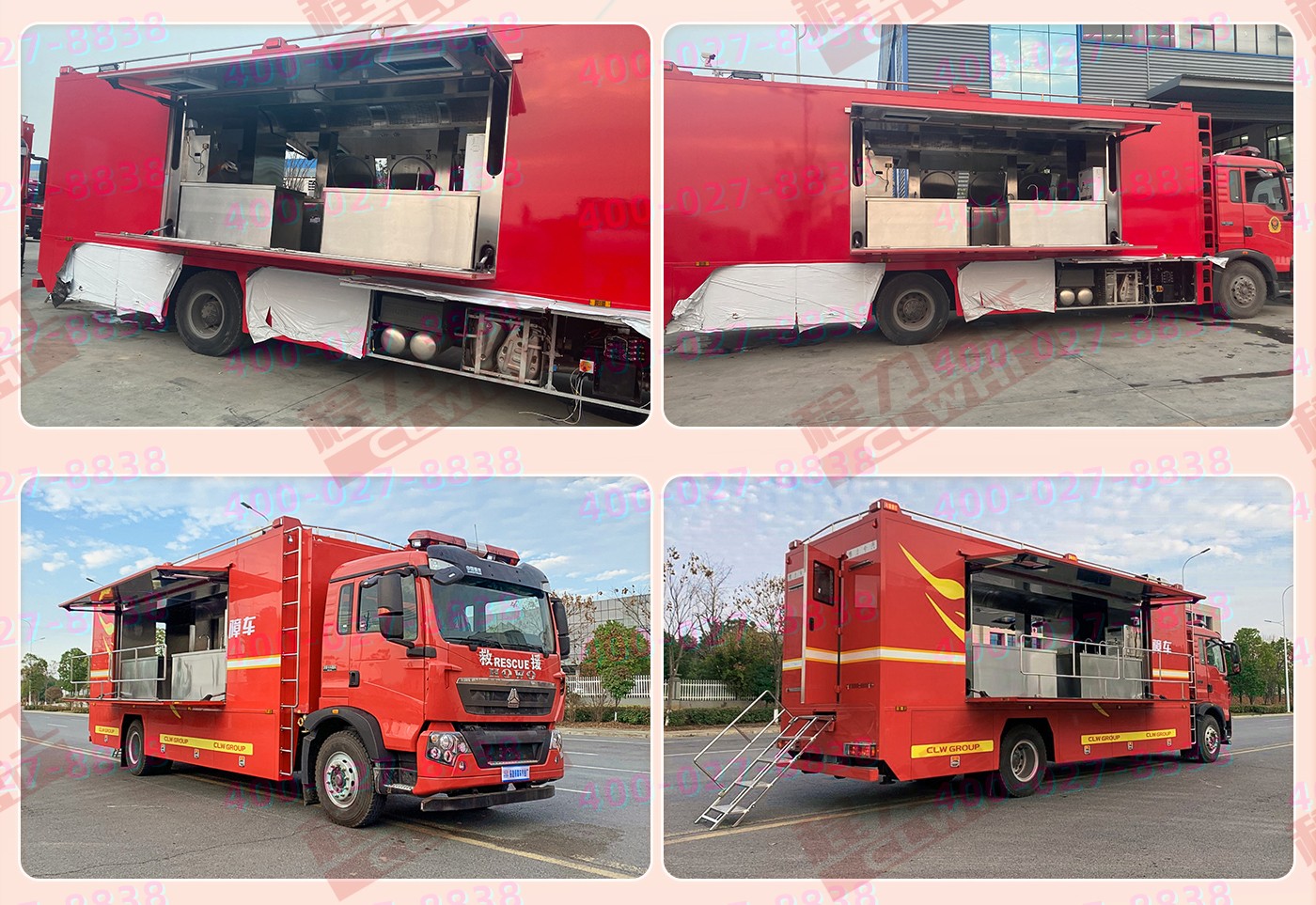 重汽汕德卡飲食保障車集爐、櫥、箱、案與一體,緊湊靈巧;實現了衛生、健康、環保的要求; 功能性等集合為一體。車廂可兩邊展開作為打餐窗口;車廂內飾為不銹鋼,配備不銹鋼爬梯、護欄、凈水箱,污水箱,雙眼灶,蒸飯車,冰箱等。不銹鋼整體壁柜,工作臺,發電機,空調等。該車機動性能好,專業性強,自動化程度高,自然環境適應性強,并能在駐車和行車時進行炊事作業,可保障執行野外任務部隊的飲食和飲水供應。